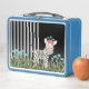 This delightful zebra, in a field of blue flowers, adorns the front of this lunch box. This whimsical design is perfect for adults and children. This lunchbox is available in seven colours, including light blue, shown here.