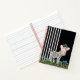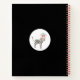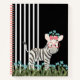 Here’s a fun notebook design featuring a delightful zebra, in a field of blue flowers. This notebook is available with in a softcover or hardcover. There are seven different paper designs, including Wide Rule, shown here. You also have your choice of seven spiral colours.