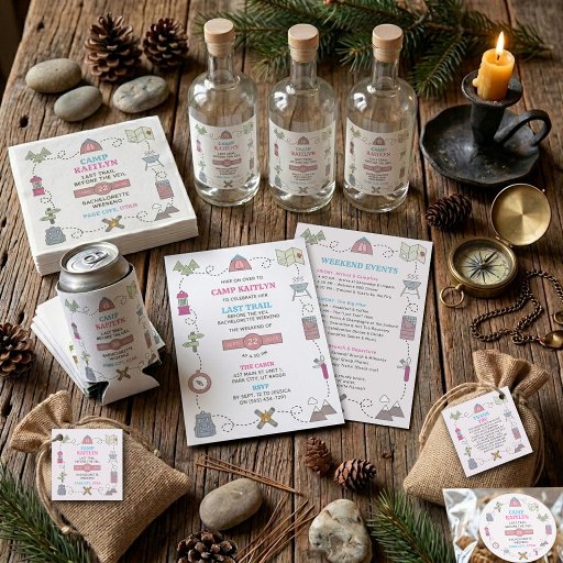 Complete your "Last Trail Before The Veil" setup with this charming camping bachelorette party weekend tote bag. Designed to match our "Camp Bach" party suite, this bag features whimsical, hand-drawn outdoorsy icons including tents, backpacks, and campfires. Whether you're hosting a gourmet BBQ at a luxury cabin or roasting s'mores by the lake, this bag will add a personalized, professional touch to your weekend. This is a must-have for any adventure-loving bride’s final fling! Easily update the name, date, and location to fit your specific trip. Perfect for mountain, forest, or national park bachelorette themes. Coordinate your entire event by pairing these with our matching "Camp Bach" party suite!
