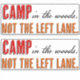 Are you annoyed by other drivers who cannot follow simple driving rules and etiquette? "Camp in the Woods. Not the Left Lane." is a humorous way of getting the message across to others around you on the road.