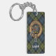 Le badge Campbell crest entouré d'une sangle et boucle sur l'arrière - plan tartan. Texte personnalisé des deux côtés.