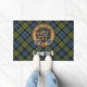 Campbell crest badge surrounded by a strap and buckle over tartan background. Custom text.