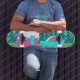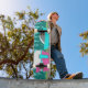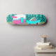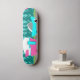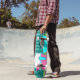 Ce Retro Camper / Trailer et Car Skateboard dispose d'un dessin humoristique moderne et minimaliste du milieu du siècle qui vous laissera prêt à prendre la route ouverte. Hommage aux années 1950, ce design présente une voiture turquoise vintage au sommet blanc, tirant une remorque kitschy vers sa destination finale. Le RV rétro, parfaitement restauré, a une moitié inférieure rose chaude, une moitié supérieure blanche et un éclair turquoise séparant les deux. La porte du côté du camping est également turquoise. L'accent final est l'aile rose chaud qui monte de l'arrière de cette maison sur roues. Les campeurs heureux roulent sur une route grise. La route est entourée d'herbe verte et luxuriante. Dans l'arrière - plan, on peut voir les silhouettes turquoises d'une véritable forêt de cèdres, contre un ciel d'aqua aux nuages bouffants et bleu clair. Ce design est parfait pour tous, des hippies à la retraite, des hipsters en herbe, ou tous ceux qui veulent revivre de grands souvenirs d'enfance. La meilleure partie est que personne ne demande : "Sommes-nous encore là ?"