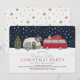 This cute merry little christmas party invitation features a snow background with a red van with a teardrop/truck camper/trailer and Christmas tree. The reverse side features a white background with faux gold star patterns. Personalize it for your needs. You can find matching products at my store.