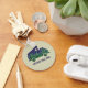 Create a personalized keychain for your van's keys or add the name of your favourite camping spot to make your own custom souvenir. This key chain features an illustration of a camper fan with a popup tent on the roof and is illustrated to look like a moonlit night in the forest with a full moon in a star-filled indigo sky shining down on a grove of evergreen trees. Your own custom text appears below in blue lettering.