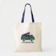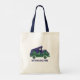 Create your own custom souvenir or a personalized going away gift when you personalize this tote bag with your own message. This tote features an illustration of a camper fan with a popup tent on the roof and is illustrated to look like a moonlit night in the forest with a full moon in a star-filled indigo sky shining down on a grove of evergreen trees. Your own custom text appears below in blue lettering. The graphic and text appear on both sides of the bag.