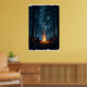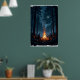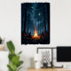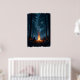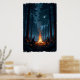 Glow showing two people sitting by a campfire in a dark forest keywords: campfire, fire, forest, woods, night, dark, trees, pine trees, people, sitting, friends, camping, outdoors, nature,...