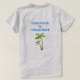 Camping t-shirt with custom text and silver RV decorated in tropical colours. Customize text on front and back to advertise a campground. Bright, turquoise green chairs sit in front of a little RV with lime green and hot pink awnings. Flamingos and seashells complete the design and distressed, printed text curves across the top of the image. Many shirt colours are available to choose from or change the style. This design works for men and children as well.