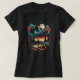 A cool design for camping lovers featuring a mountain landscape at night with a tent and a campfire near a river.