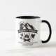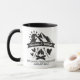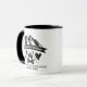 Romantic coffee mug for couples who love camping together, featuring mountains and bonfire with hearts black silhouettes on a white background, with the caption exploring together since in black lettering. Easily customizable by adding your names and text.