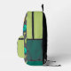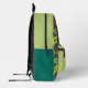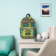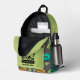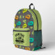 Personalize this camping theme backpack with your town and state or other text and start a fun conversation in your out and about travels. Printed with a colourful tossed pattern of tear-drop style campers and coordinating green and teal colour block accents.