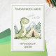 Camping Dinosaur Kids Happy Valentine's Day Holiday Card features a cute green watercolor dinosaur with a cheerful smile, standing in a scenic valley beside a camping tent. Designed in an adorable kids’ cartoon style, the card has a simple white background, a matching green border, and darker green "You are my favourite camper!" text that delivers a sweet Valentine’s Day message. Personalize the card with your recipient’s name for an extra-special touch.