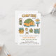 A camping birthday party invitation to invite the birthday boy or girl's best friends over for a camp out and bonding. Design comes with hand drawn doodles of camping essentials such as a lamp, a tent, road signs, camping bag, compass, multipurpose knife, water bottle and map! The design is scanned and coloured digitally with a colour palette of green, blue and yellow. Personalize easily with your camping details in the space provided.