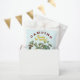 Sacs de faveur de la fête de camping avec texte "merci d'être venu". Papier blanc (ou kraft) avec conception de camping de tente, y compris un feu de camp, un péage, des jumelles, une tasse et des thermos. Texte courbé en haut pour "camping" texte ou autre.