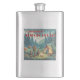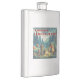 The product is a good size and came exactly as it was pictured.  The lid is not attached to the flask, which could be dangerous on drunken nights... The print came out surprisingly well and looks very sharp.  Would definitely recommend.