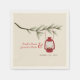 Paper napkins featuring an illustration of a red camping lantern hanging from an evergreen tree branch. Personalize the text. Look for matching invitations and other coordinating items at Jill's Paperie.