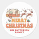 Camping Merry Christmas Reindeer Personalized Name Classic Round Sticker