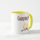 Une belle tasse à café solide avec "tasse de camping" écrite dessus et un feu de camp rugissant. Jetez ceci dans vos fournitures de camping et il sera toujours prêt quand vous êtes. Personnalisez avec le nom de votre famille ou le nom de votre établissement.