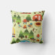 Camping scene - caravan, camping chairs, fire plac throw pillow