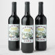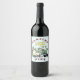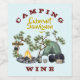 Custom wine labels with a camping theme. A tent and campfire image over light blue bottle labels with text in three places. Sample wording is “camping wine” with a place for wine name or drinker’s name. It could also be personalized for a casual wedding for the outdoorsy couple and have their names along with “wedding wine” text.