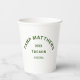 Family camping, personalized forest green camp crest paper cups. Personalize with your family name, the year of your camp trip and location. Perfect for the adventurous family as they embark on their happy campers trip or family reunion camping weekend. Designed to match our Family Campers Orange & Green Collection.
