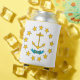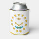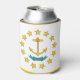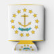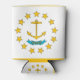 This can cooler pays tribute to Rhode Island's rich cultural heritage and unique identity, featuring elements reminiscent of its iconic flag. The design prominently displays a white field with thirteen gold stars arranged in a circle, symbolizing Rhode Island's historical role as one of the original thirteen colonies.