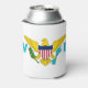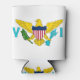 This can cooler pays tribute to the Virgin Islands' rich cultural diversity and natural beauty, featuring elements reminiscent of its iconic flag. The design prominently displays a white field with a simplified version of the Great Seal of the United States, which includes an eagle holding arrows and an olive branch, accompanied by the letters "V" and "I" symbolizing Virgin Islands.