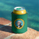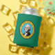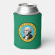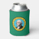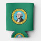 This can cooler pays tribute to Washington State's rich cultural heritage and natural beauty, featuring elements reminiscent of its iconic flag. The design prominently displays a dark green field with the state seal centred, depicting an image of George Washington, the first President of the United States, along with a vignette of Mount Rainier, the state flower (coast rhododendron), and an outline of the state.