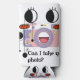 A playful and creative cartoon design featuring a camera with a smiling face and the phrase "Can I take your photo?". It's a fun graphic ideal for t-shirts and other products