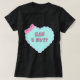 The color of the t-shirt is brighter than expected but it fits well and is very comfortable. The blue heart doesn't contrast much over the pink color and is a little pale