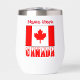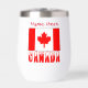 Personalized thermal wine tumbler featuring snow capped letters reading CANADA found underneath the Canadian Flag. Add your name to personalize the look or create a gift for Canada Day. The Canadian flag has a white centre with a red maple leaf inside. One the right and left of the white area are two red ones. Terrific for family reunions, travel groups, and clubs. Fun gift for any occasion or event. Design shows on two sides.