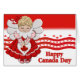 Canadian Angel Features wavy red waves and Mapleleaf background She holds a heart with a red Mapleleaf. Text says... Happy Canada Day on the front. customize the inside greeting, message and closing