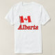 Big red letters spell out the Province name Alberta, with a wavy Canadian flag flying behind it. This design is available on a large assortment of t-shirts, gifts and other apparel.