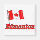 Big red letters spell out Edmonton the capital city of the Province Alberta, with a wavy Canadian flag flying behind it. This design is available on a large assortment of t-shirts, gifts and other apparel.