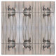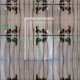 This animal fabric features a geometric abstract pattern of migrating Canada Geese sitting on a log in a shallow pond. The brown, black and white markings are reflected in the water. The pale blue water ripples create a fascinating vertical design of reflected tree trunks.