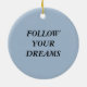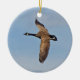 Photograph of a Canada goose in flight against a blue sky with hints of pink. The back text reads "FOLLOW YOUR DREAMS"
