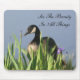 Lovely wild Canada Goose with purple irises inspirational mousepad reminding us to see the beauty in all things. Digital gouache style photo painting by Susan. Click on Customize to add text and change font size, style, and colour. This image is available on many products in my gallery. Please visit Smilin' Eyes Treasures to see more flower and nature photography and digital art cards and gifts.
