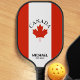 Red and white Canada pickleball paddle with Canadian flag and maple leaf. Customizable text. Great gift for Canadians.