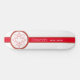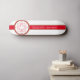 A calligraphic red maple leaf design with interlaced vector outlines is set on a gold bordered red stripe against a white background.