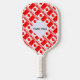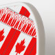 The Canadian Flag is red and white with a red maple leaf in the centre. Under it is the word CANADA in red, snow capped letters. Design, on a pickleball paddle, is tiled for a more aesthetically pleasing look. Squiggly squares make up a white space that has a place to add your name for personalized use. If you want to give a gift, just add someone else's name.