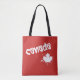 Totally thrilled with this bag. The material is thick and durable (this is my third purchase of this tote bag). The printing turned out amazing. The bright red was just as bright as it is on the computer. So impressed with this bag.