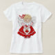 Sweet Angel wearing a red and white dress while holding a white heart with a red Maple leaf in the middle.