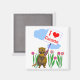 Magnet with my digital artwork of a cute little beaver holding a sign that says "I love Canada" with a red heart.