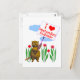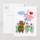 Postcard with my design of a beaver character holding a sign that says "I love Newfoundland and Labrador" with a red heart.