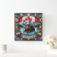 Canadian Beaver Near Mountains and Maple Leaves Square Wall Clock