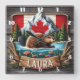 Canadian Beaver With Flag and Mountains Square Wall Clock