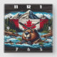 Canadian Beaver With Flag in Mountain Stream Square Wall Clock
