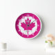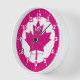 Canadian Flag Fuchsia Maple Leaf on a Clock