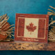 A digital recreation of Canada's national flag formed by carefully scraping off the reddish outer surface on the reverse side of birchbark to reveal the lighter, yellowish layer beneath. This is a traditional craft among Native Americans/First Nations across the northern United States and Canada. Add your own text; perhaps, "Happy Canada Day!"