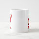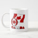 Giant coffee mug features the flag of Canada motif in a soccer ball or football. Behind it flies the Canadian flag in all its glory. Below it all is the word CANADA in red and white. Shows on two sides of mug. Greatly appreciated by soccer fans of Team Canada.
